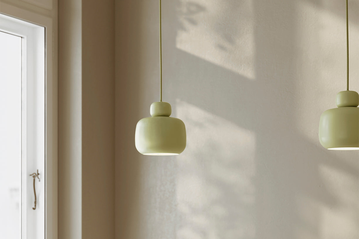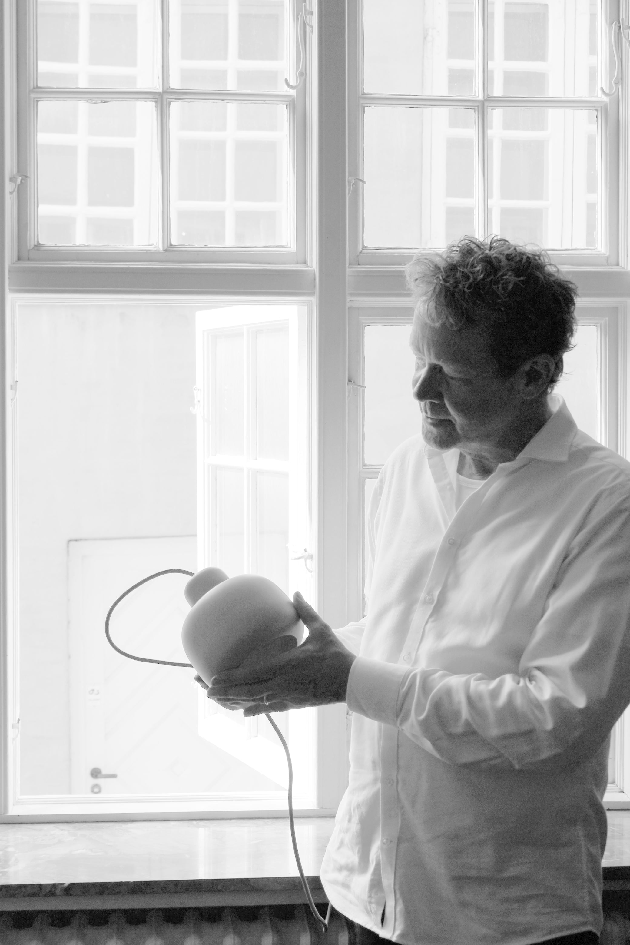 Stone-lampen opstod i et kreativt forløb, hvor jeg arbejdede med former inspireret af at stable sten oven på hinanden. Det er muligvis en af de mest urmenneskelige udtryksformer, som stadig drager os ude i naturen. Jeg minimerede udtrykket til to stablede former, som samtidig refererer til silhuetten af en klassisk glødetrådspære.