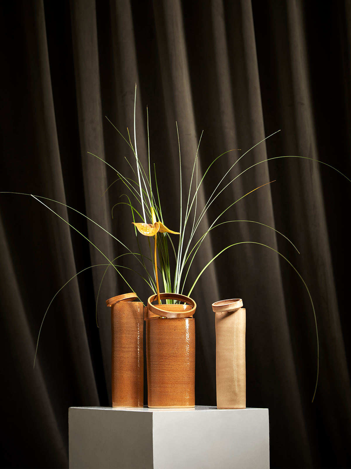 Som et naturligt trin i produktionen, kan keramikeren nemt skære en eller to ringe af toppen af den færdige vase, og placere dem i en skrå vinkel. Dette giver mulighed for at arrangere enkelte blomsterstilke eller små bundter på en levende, men defineret måde. Denne merværdi er kernen i HIDN-designsproget.